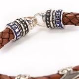 Manny Iriarte, known for his innovation and trendsetting style, brings you a timeless unisex bracelet, individually handcrafted with the finest leather, sterling silver, and 14k gold clasp. An outside-the-box piece that will indeed cause a sensation wherever your travels take you. This beautiful bracelet comes in two colors, black and camel Italian leather. Unique in its design, each piece includes two charms. One charm, depicting Fuente lovers, the other, Fuente The OpusX Society. Both in a vibrant hand-painted red and blue enamel. Together with Cuban Jewelry designer Rudy Santayana and his vast jewelry designing experience, this unique piece will surely be a sensation and a "must-have" accessory to your everyday wardrobe. All pieces are handcrafted in Coral Gables, Florida.
