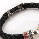 Manny Iriarte, known for his innovation and trendsetting style, brings you a timeless unisex bracelet, individually handcrafted with the finest leather, sterling silver, and 14k gold clasp. An outside-the-box piece that will indeed cause a sensation wherever your travels take you. This beautiful bracelet comes in two colors, black and camel Italian leather. Unique in its design, each piece includes two charms. One charm, depicting Fuente lovers, the other, Fuente The OpusX Society. Both in a vibrant hand-painted red and blue enamel. Together with Cuban Jewelry designer Rudy Santayana and his vast jewelry designing experience, this unique piece will surely be a sensation and a "must-have" accessory to your everyday wardrobe. All pieces are handcrafted in Coral Gables, Florida.